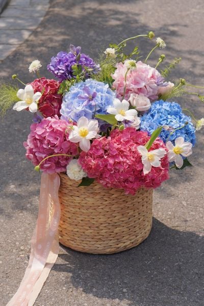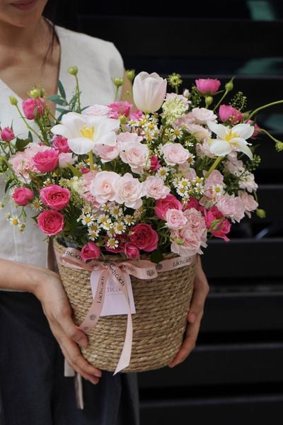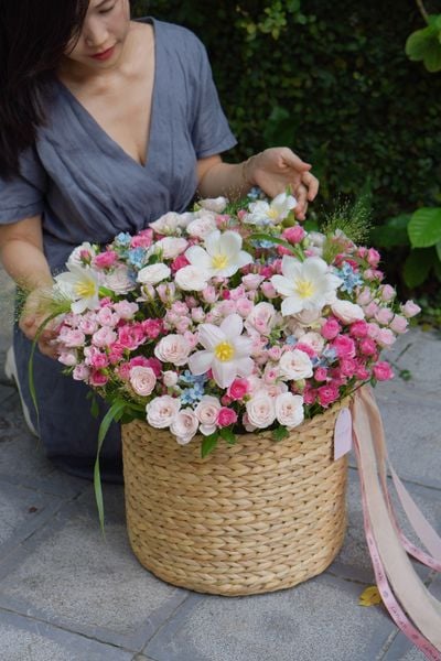 Giỏ hoa cói mộc mạc mang đến cảm giác vừa gần gũi, vừa chỉn chu và trang trọng
