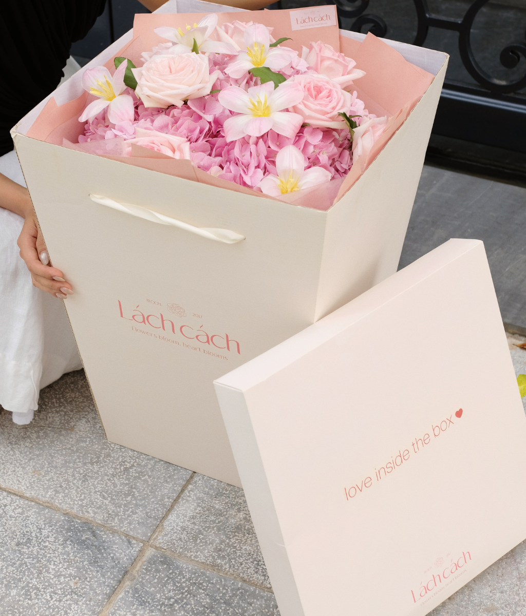 Đôi khi, tình yêu lại thật khó để tỏ bày qua lời nói. Nhưng với A Sweet Surprise, Lách Cách đã thay lời yêu thương bằng những hoa cỏ thơm lành, được sắp đặt khéo léo trong một hộp xinh xắn, như một món quà ngọt ngào dành tặng cho trái tim đang yêu. Khi mở hộp, sẽ là mở ra cả một thế giới ngọt ngào, đầy yêu thương, nhất định sẽ khiến người ấy rung động mãi không quên.