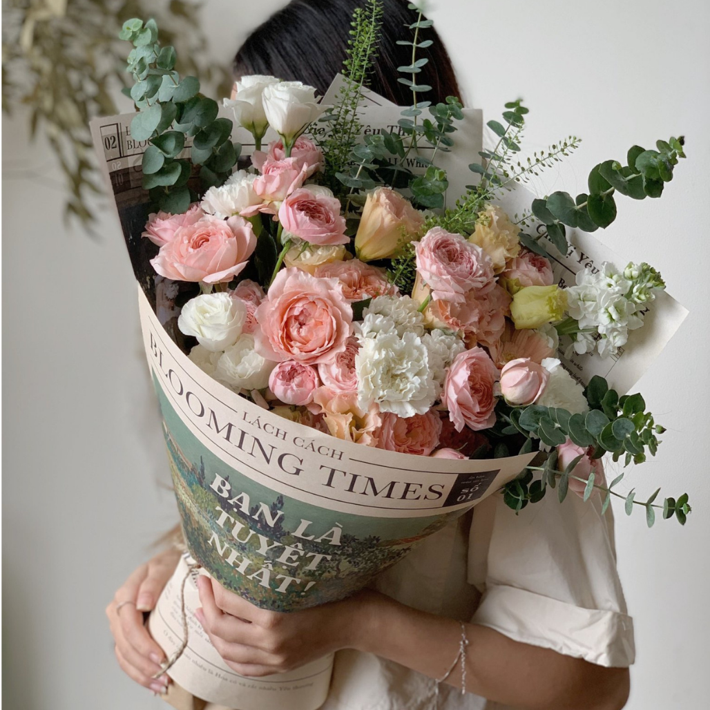 Mỗi bó hoa sẽ được gửi đi trong túi hộp nâu thân thương cùng thiệp chúc mừng tới tận tay người nhận. Tin chúng mình đi, những nhành hoa thắm và lá xanh thơm lành sẽ luôn đủ dịu dàng để thay bạn nói những lời yêu thương.