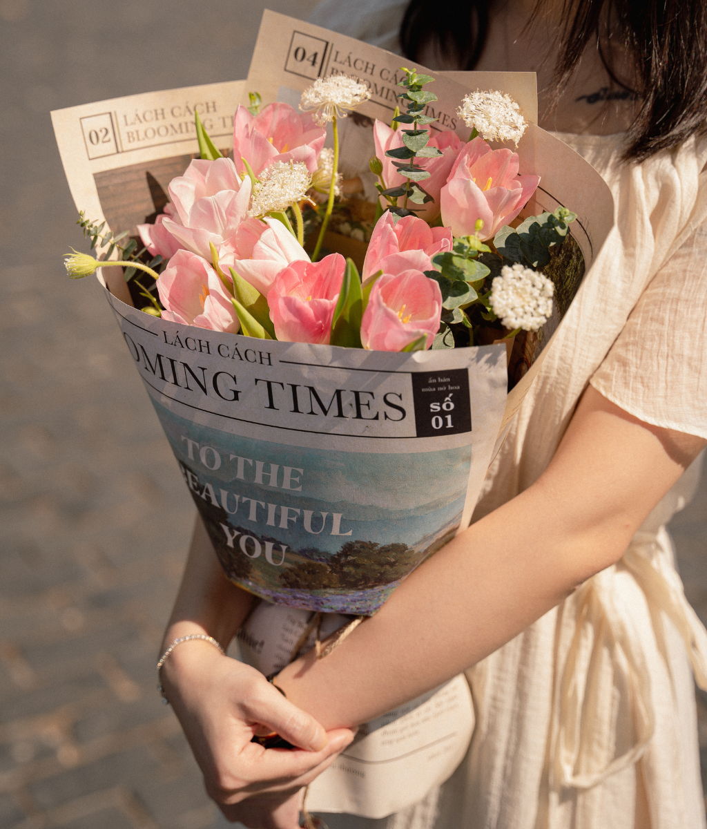 Mỗi bó hoa sẽ được gửi đi trong túi hộp nâu thân thương cùng thiệp chúc mừng tới tận tay người nhận. Tin chúng mình đi, những nhành hoa thắm và lá xanh thơm lành sẽ luôn đủ dịu dàng để thay bạn nói những lời yêu thương.