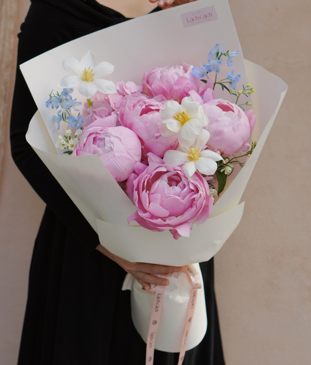 Lưu ý: Vì hoa là sản phẩm của tự nhiên, nên màu sắc, hình dáng có thể thay đổi tuỳ theo từng thời điểm trong tự nhiên. Lách Cách đảm bảo bó hoa giao đến tay người nhận sẽ giống mẫu tới 80% về tone màu, kích thước, cách gói giấy. Ngoài ra, hoa lá phụ sẽ được kết hợp linh hoạt theo từng ngày và luôn đảm bảo độ tươi mới.
