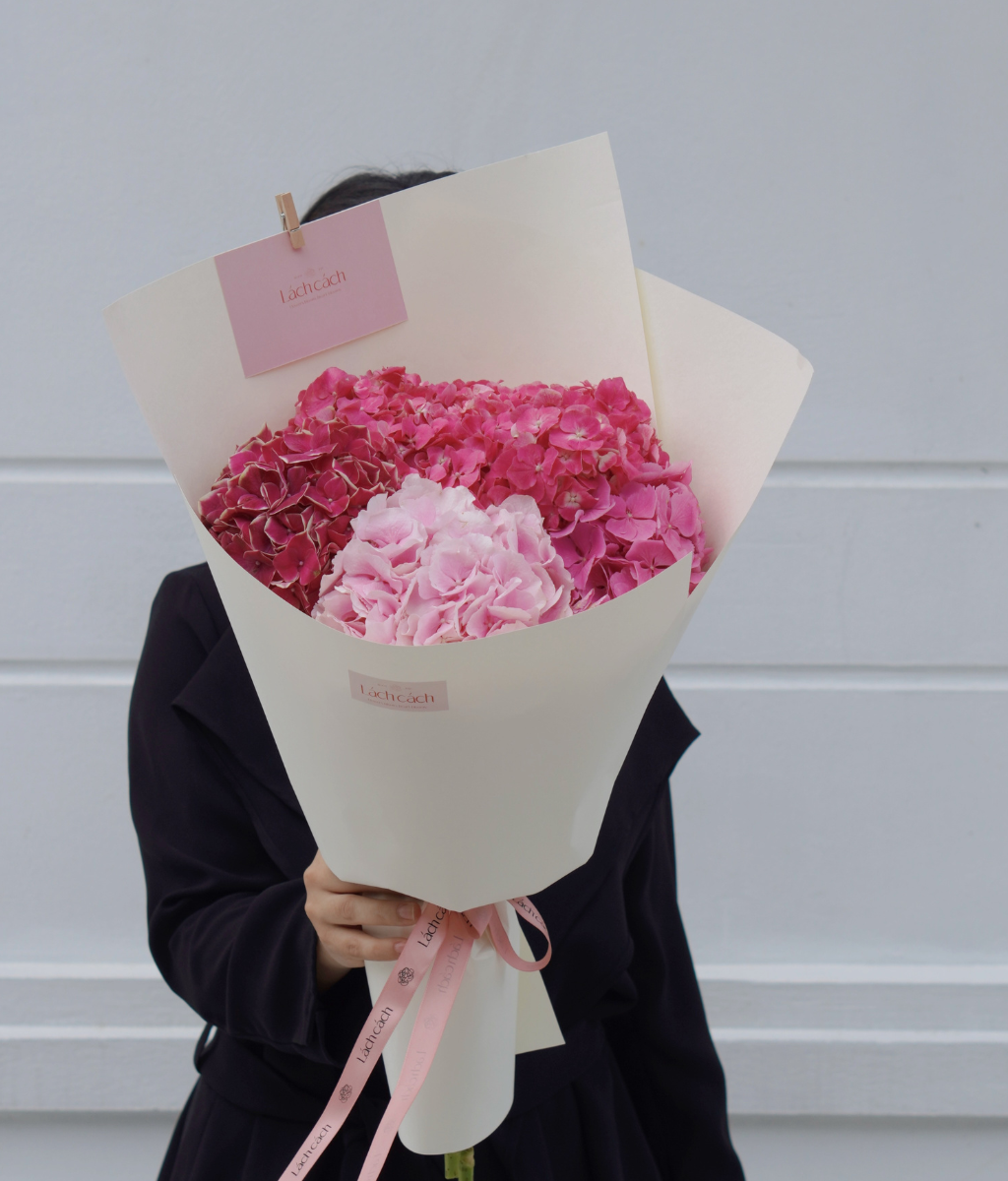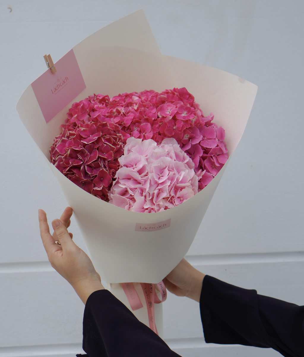 Bó một mặt tú cầu hồng đậm - nhạt Hà Lan