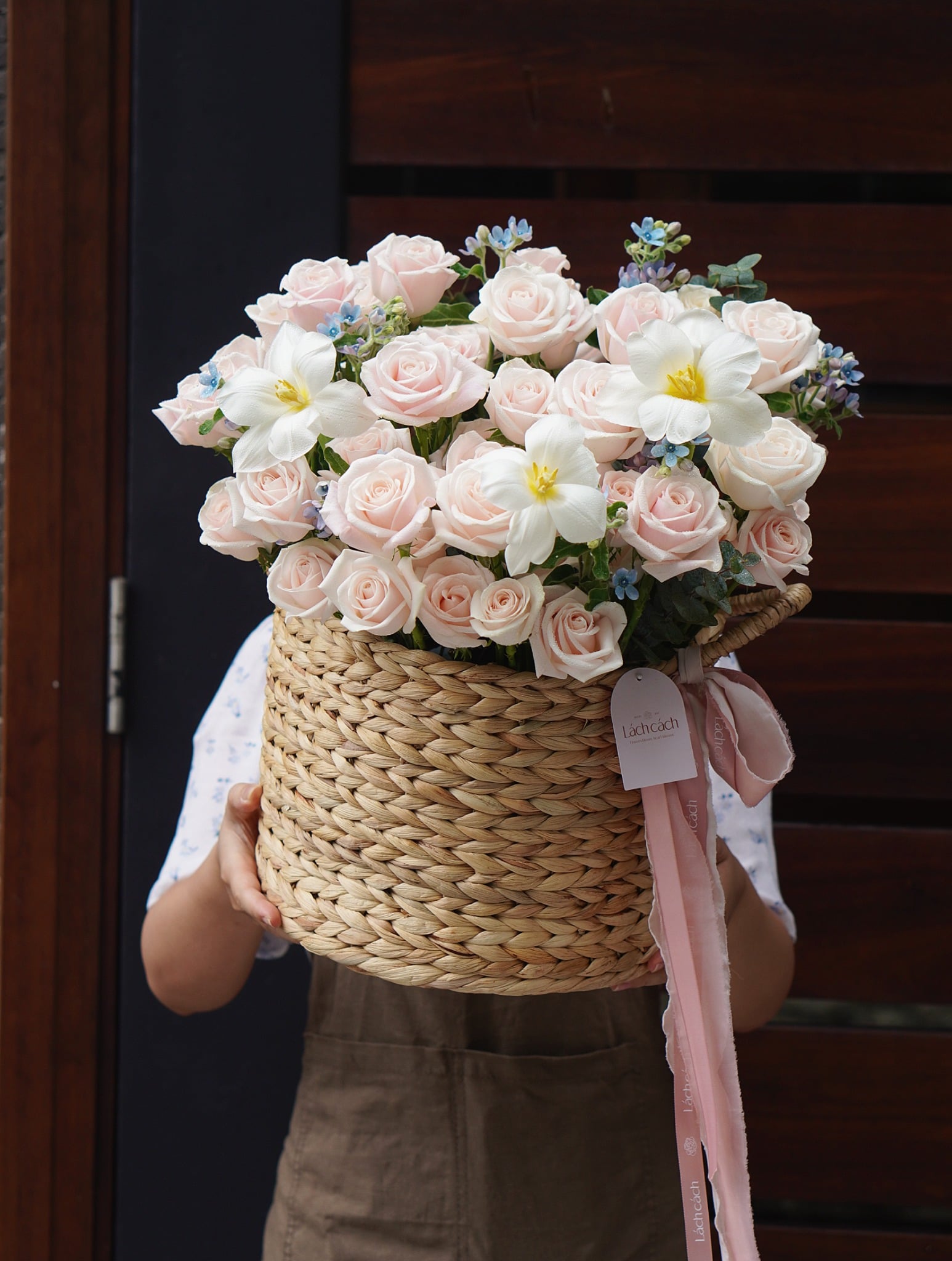 Những giỏ hoa được Lách Cách lựa chọn chất liệu thủ công mang lại cảm giác quen thuộc nhưng không kém phần mới mẻ. Lách Cách ưu tiên sử dụng các loại nguyên liệu theo mùa, sáng tạo theo những dáng vẻ khác nhau phù hợp với thiết kế giỏ hoa. Giỏ hoa là một lựa chọn thú vị để bạn dành tặng người trân quý vào một dịp đặc biệt.
