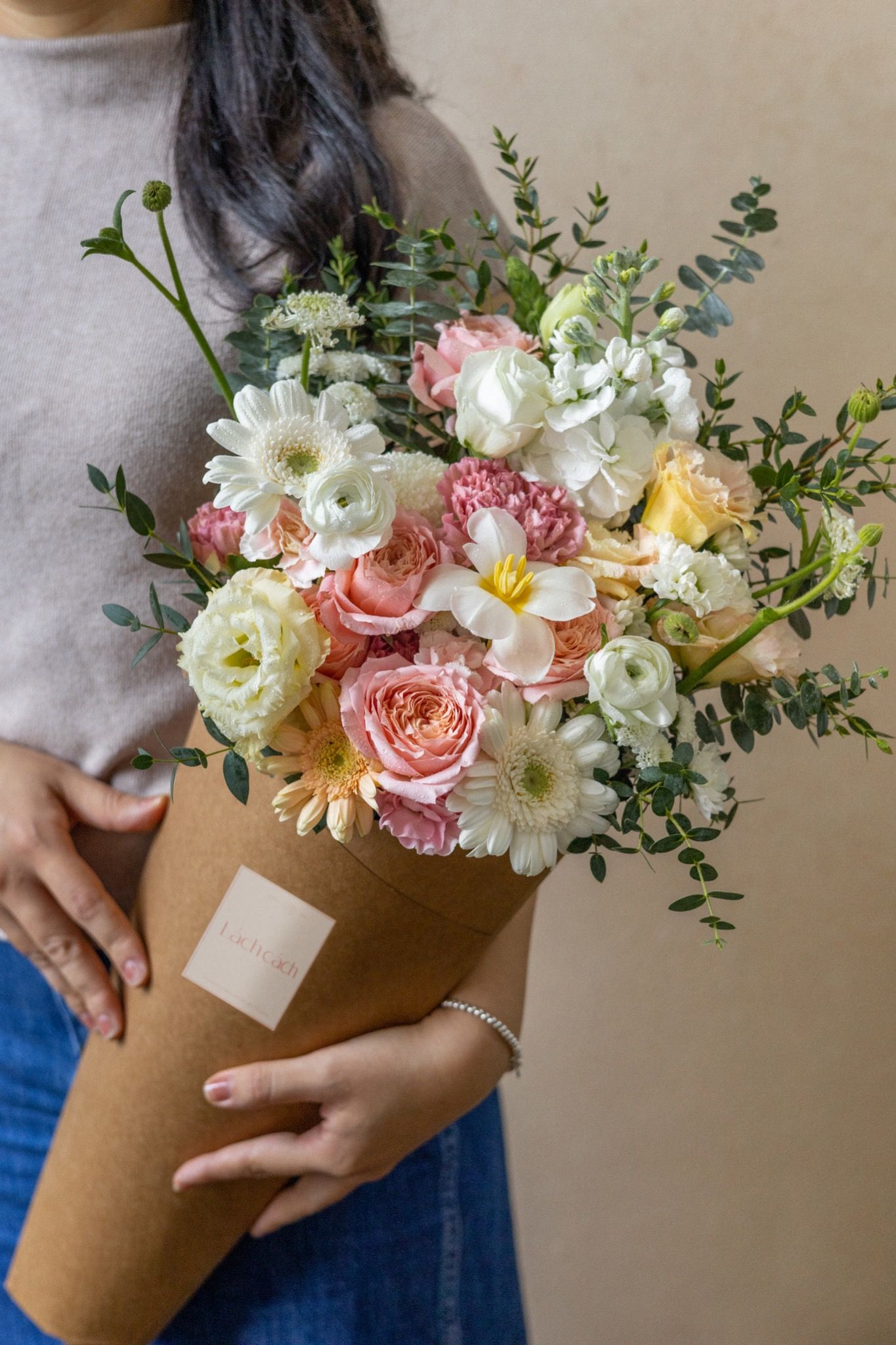 Lưu ý: Vì hoa là sản phẩm của tự nhiên, nên màu sắc, hình dáng có thể thay đổi tuỳ theo từng thời điểm trong tự nhiên. Lách Cách đảm bảo bó hoa giao đến tay người nhận sẽ giống mẫu tới 80% về tone màu, kích thước, cách gói giấy. Ngoài ra, hoa lá phụ sẽ được kết hợp linh hoạt theo từng ngày và luôn đảm bảo độ tươi mới.