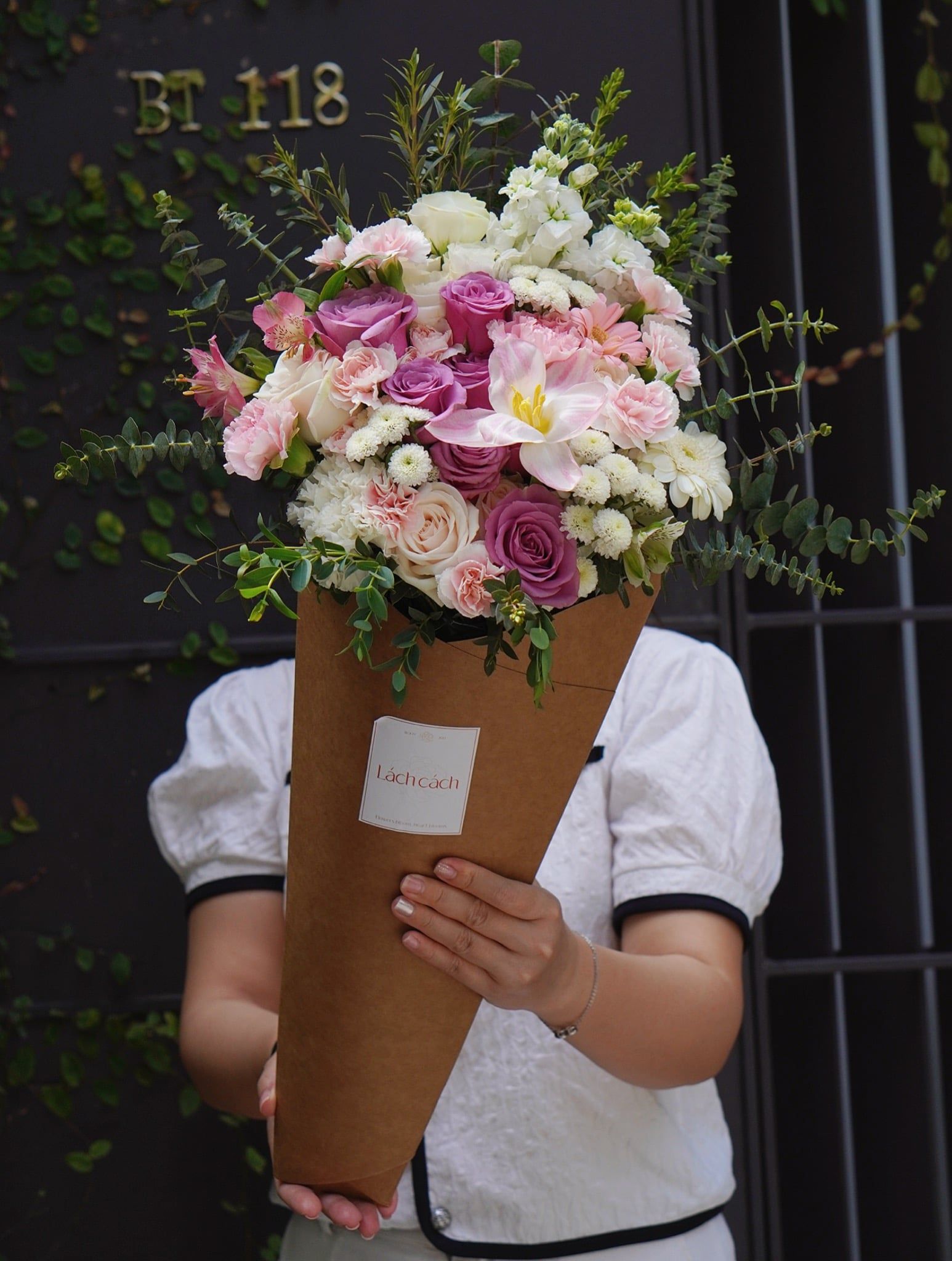 Lưu ý: Vì hoa là sản phẩm của tự nhiên, nên màu sắc, hình dáng có thể thay đổi tuỳ theo từng thời điểm trong tự nhiên. Lách Cách đảm bảo bó hoa giao đến tay người nhận sẽ giống mẫu tới 80% về tone màu, kích thước, cách gói giấy. Ngoài ra, hoa lá phụ sẽ được kết hợp linh hoạt theo từng ngày và luôn đảm bảo độ tươi mới.