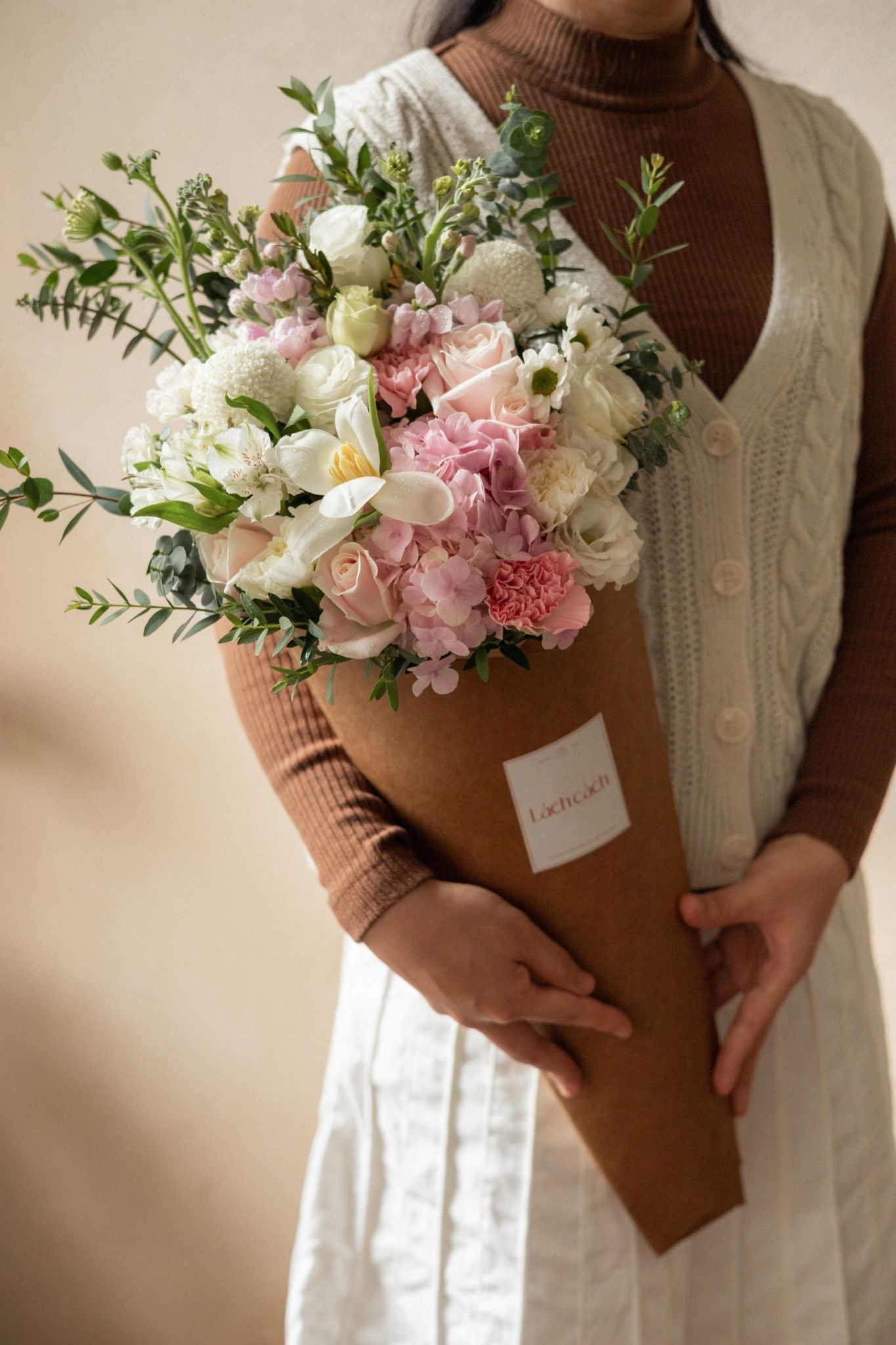 Lưu ý: Vì hoa là sản phẩm của tự nhiên, nên màu sắc, hình dáng có thể thay đổi tuỳ theo từng thời điểm trong tự nhiên. Lách Cách đảm bảo bó hoa giao đến tay người nhận sẽ giống mẫu tới 80% về tone màu, kích thước, cách gói giấy. Ngoài ra, hoa lá phụ sẽ được kết hợp linh hoạt theo từng ngày và luôn đảm bảo độ tươi mới.