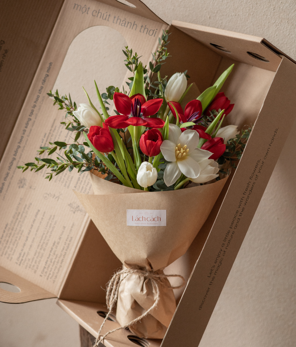 Lưu ý: Vì hoa là sản phẩm của tự nhiên, nên màu sắc, hình dáng có thể thay đổi tuỳ theo từng thời điểm trong tự nhiên. Lách Cách đảm bảo bó hoa giao đến tay người nhận sẽ giống mẫu tới 80% về tone màu, kích thước, cách gói giấy. Ngoài ra, hoa lá phụ sẽ được kết hợp linh hoạt theo từng ngày và luôn đảm bảo độ tươi mới.
